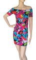 Junior Cotton Spandex Off Shoulder Printed Mini Dress