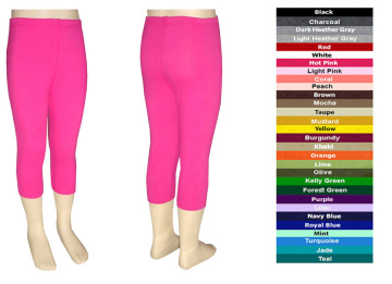 These girls Cotton Spandex Capri Leggings, offered by Fashion Drive, are perfect for excercise and casual wear. They are comfortable and come in eighteen different colors.