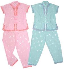 This cute Chinese style top and pants set is perfect for young girls from age about 3 to 8. It is made of light weight silk-like material and is very soft and comfortable for little girls to wear. The Fashion Drive superstore is pround to be able to bring you such exotic clothing.